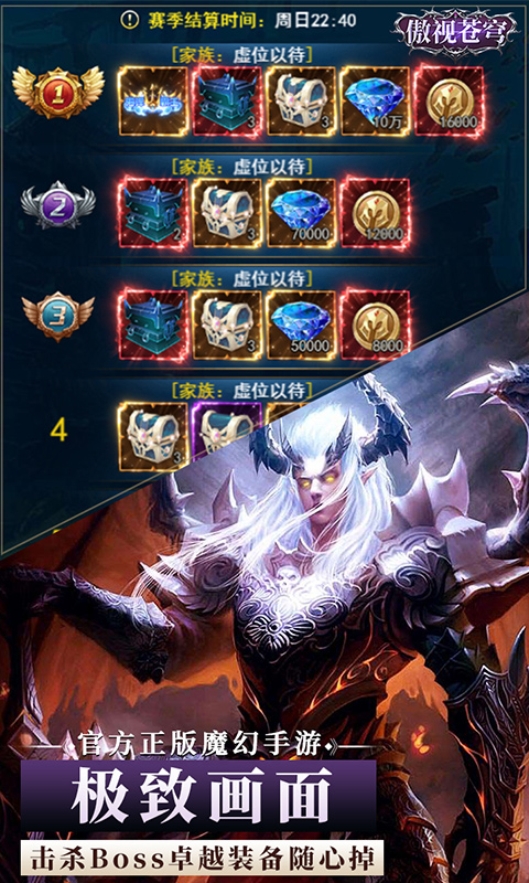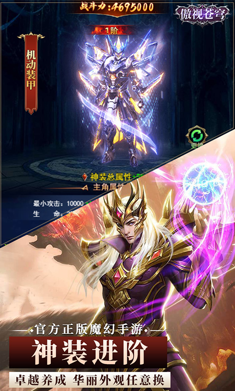 神级美学魔幻RPG大作《傲视苍穹》!多种突破乐趣更多。美术全面升级,超清画质高精度建模,震撼的战斗技能效果丝滑多变,自动挂机刷怪也能打得漂亮!上千套华美造型,强化流光表现让装备更炫,精灵随战、天神附体助你实力碾压全场。还有战盟盟主虚位以待,激烈的跨服战甚至百团大战一触即发,快来燃动你的战盟之魂,开启魔幻之旅吧!