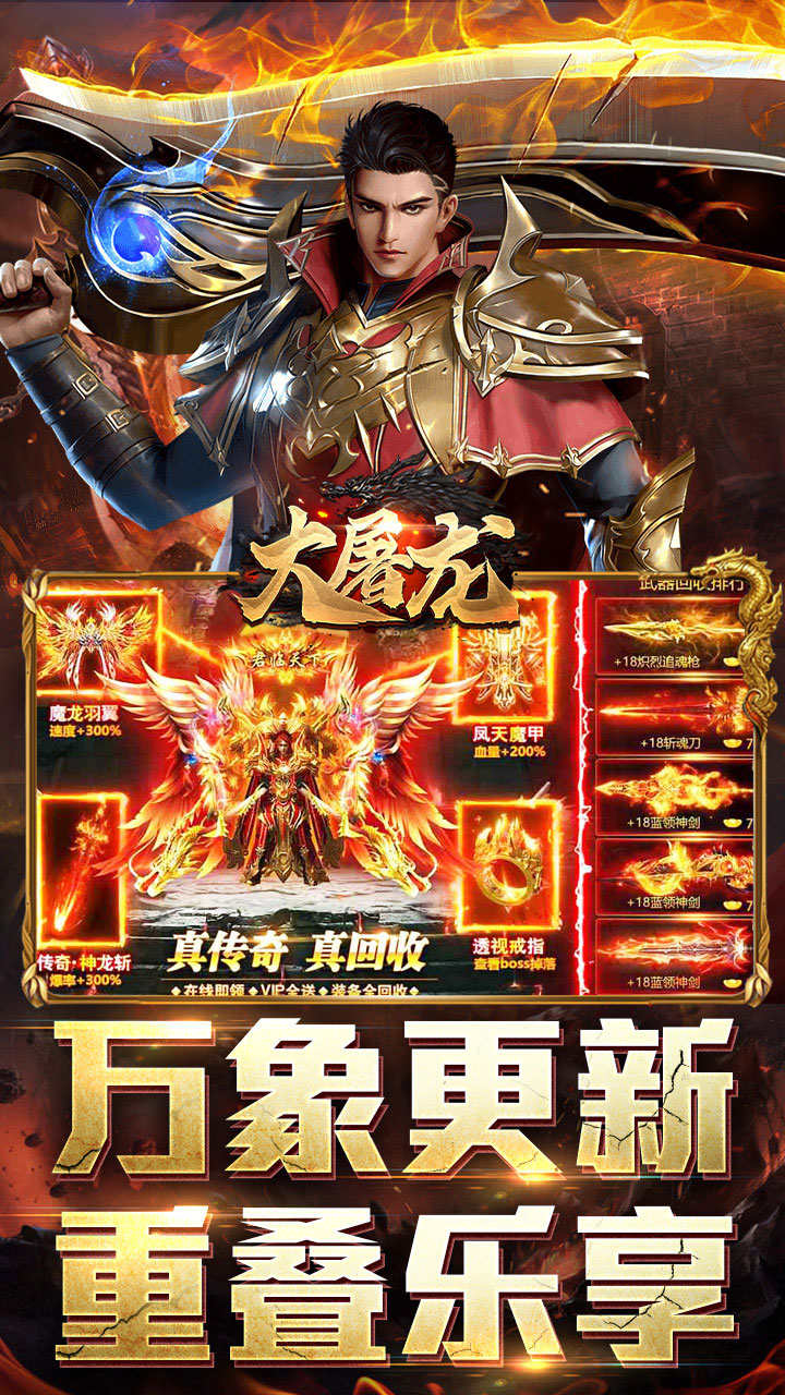 《大屠龙》是一款经典复古传奇手游,散人追梦,超多装备!上线赠送自动回收、自动货币、自动拾取、自动泡点、施毒术、战士全技能,丝滑起步无压力!!超值装备!上百张地图精彩纷呈,等你来战!游戏中还有热血沙巴克活动,集齐你的兄弟一起血战!超多奖励等你拿! 1、上线赠送自动回收、自动货币、自动拾取、自动泡点、施毒术、战士全技能,丝滑起步无压力! 2、万象更新,重叠乐享! 3、森罗万象,恣意起飞! 4、拘灵遣将,点兵选将! 5、纵享湿滑,非般享受!