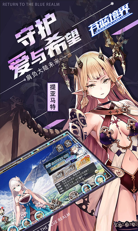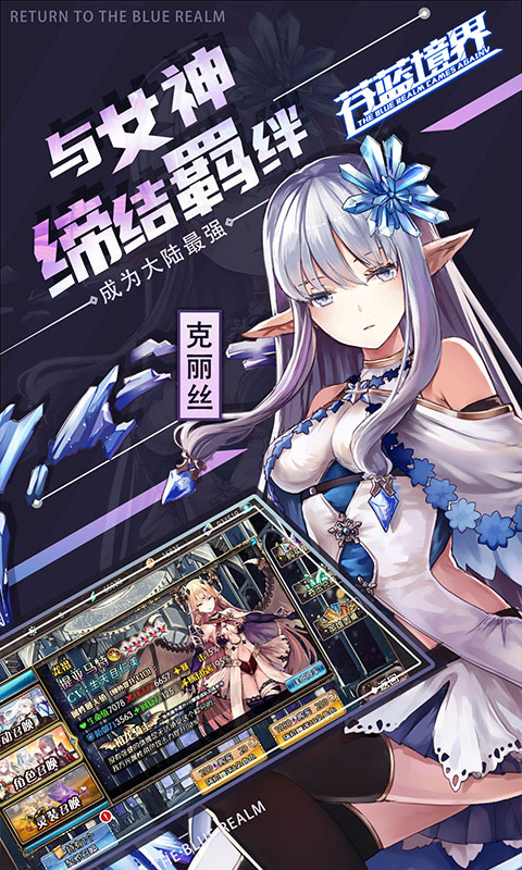《苍蓝境界》是一款拥有角色养成、策略战斗、多人合作挑战的角色扮演类二次元手游。画面日系,世界观宏大,立体呈现王道幻想冒险之旅。游戏在经典日式RPG基础上融入众多全新玩法,广邀实力CV、画师参与制作,打造激燃番剧手游体验。 1.女神开服8日恋,获超强限定角色拉比丝! 2.每日登录送豪华奖励,天天登录天天有! 3.强者之证,通过指定关卡,刻下胜利的证明,获惊喜大礼! 4.完成任务送称号等好礼,更有超值宝箱等你开启! 5.冲级大礼,冒险成长,为新英雄的诞生献上祝福!