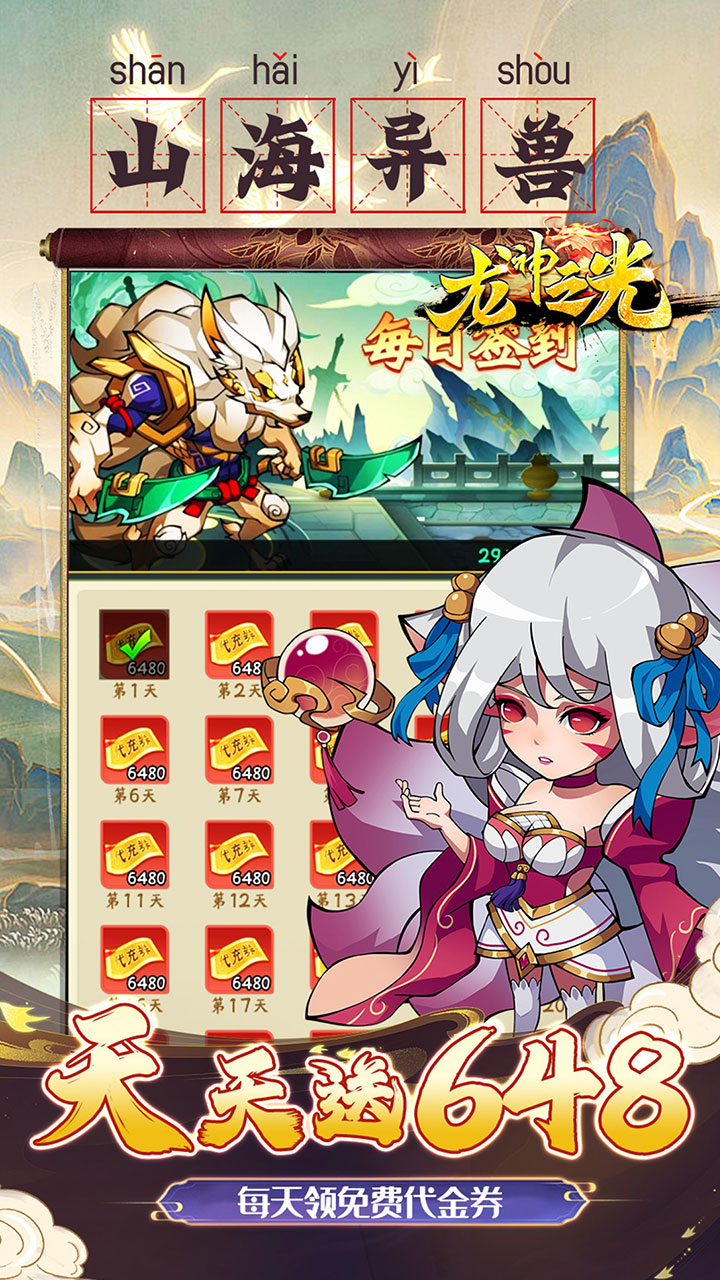 欢迎来到山海异兽世界,《龙神之光》是一款高度还原山海经的放置开箱卡牌游戏。游戏中可以收集到众多的奇珍异宝和山海神兽,玩法轻松休闲福利全面升级,每天签到免费领648代金券,革新融合多重PVE、PVP玩法和趣味养成路线,全自动托管让游戏变得更为简单。重温经典,共赴山海! ★★【趣味咸鱼0.1折】游戏内所有充值享永久0.1折福利; ★★【每天送648】游戏内每日签到送价值648元的代金券; ★★【开局福利】创角即送:仙玉*500、高级圣器令*10、修为石*500、玄铁石*500、红色随机碎片*10、红色任选碎片*10、专属圣器箱*1、4级随机宝石箱*5、神秘礼盒*1; ★★【登录豪礼】七日登录送红色异兽任选; ★★【免费千抽】SSR异兽闯关轻松获取; ★★【零元嗨购】超值礼包0元暴爽抢购; ★★【山海奇录】开箱孵异兽,趣味开箱重温山海盛世; VIP档位 价格(元) VIP1 6元 VIP2 30元 VIP3 100元 VIP4 200元 VIP5 400元 VIP6 800元 VIP7 1500元 VIP8 4000元 VIP9 10000元 VIP10 20000元 VIP11 50000元 VIP12 100000元 VIP13 200000元 VIP14 500000元 VIP15 1000000元
