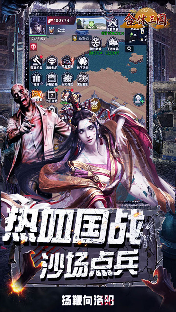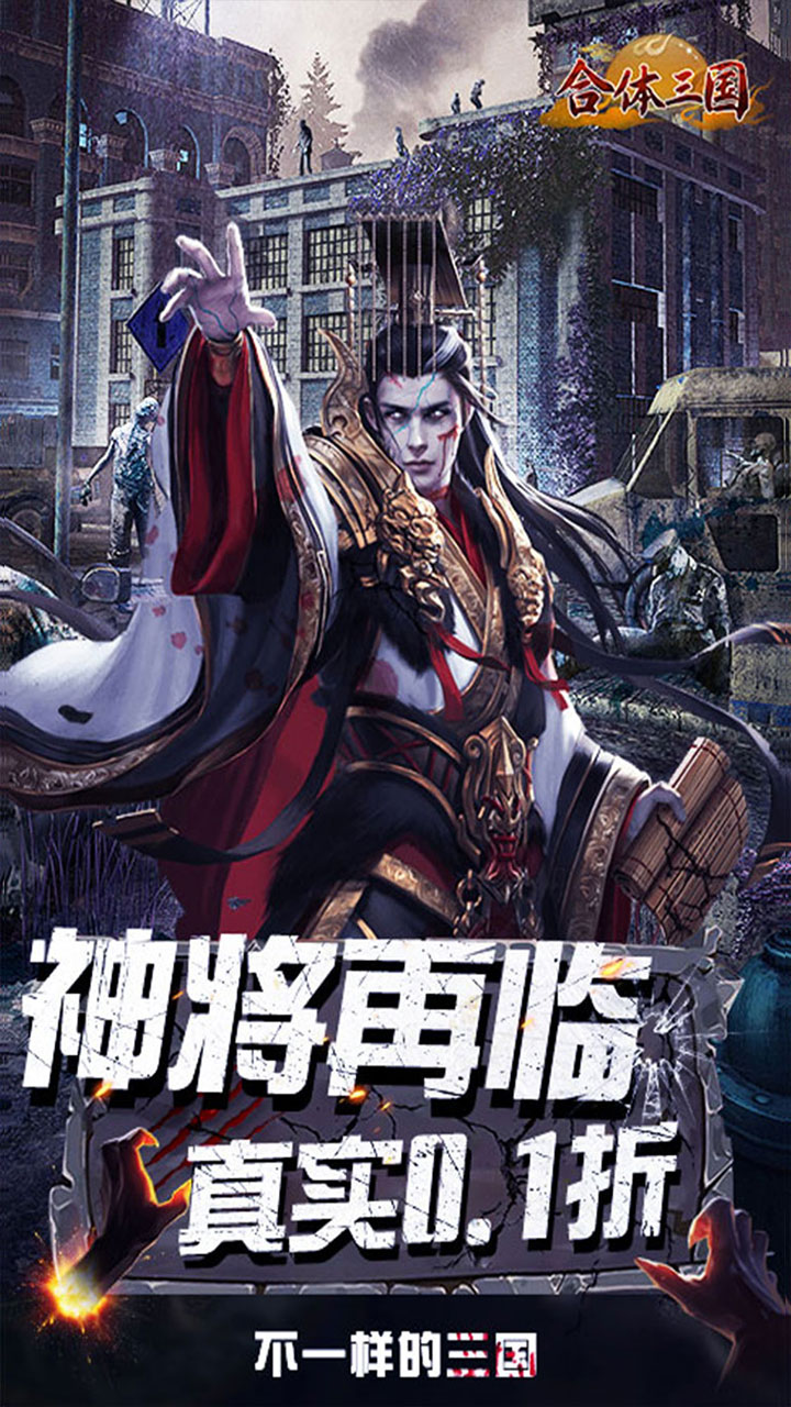 未来世界丧尸病毒爆发,人类几近灭绝。邪恶科学家们为了称霸世界找到了复活死去之人的方法,而第一批被复活的对象竟是....三国神将。 末日题材三国策略手游大作《合体三国》0.1折重磅登场!全场充值真实0.1折,首充更是只需1分钱!三国神将魂回救世,时隔2000年再度征战洛阳。在这里,有剑拔弩张的末日氛围、有兵来将挡的烧脑国战、还有精打细算的城市经营,而你需要做的,是统领三国武将夺回洛阳,在末世中筑起百年基业,拯救全人类! 1.官方正版0.1折,首充只需1分钱! 2.开局送吕布,闯关开启休眠舱唤醒极品红将! 3.七天登录天天送武将,升星资源一并奉上! 4.内置福利开宝箱,海量材料轻松拿! 5.首充仅需1分钱,极品神将助力征战沙场!