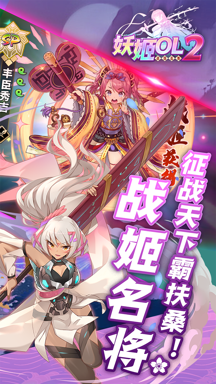 《妖姬OL2》是一款治愈系战国幕府题材和风卡牌SLG手游,织田、丰臣等幕府名将化身二次元少女战姬,和你一起征讨大名,制霸扶桑。玩家在游戏中以觉醒者的身份,搜集和培养超过100位特色鲜明的名将战姬,自由组建各种战斗小队,率领麾下士兵,联合家族成员,攻城略地,统一天下,重温战国幕府时代的恢弘历史。众多经典战役,海量可攻打城池,丰富的策略流派,古典华美的和风画面,带你畅享爽快养眼的SLG战斗新体验。 1.创角即享豪华大礼 只需创建角色,充值卡即刻到手! 百抽豪礼随你抽,开局即巅峰! 2.七日登陆,福利天天送 每日登陆领充值卡,累计登陆更有千抽豪礼! 多日登陆即送UR战姬,战力飙升不是梦! 七日登陆再送代金券,助你轻松制霸全场! 3.海量福利,拿到手软 通关奖励、活跃福利无限送,充值卡多到用不完! 每一份努力都有回报,福利多到让你惊喜连连! 4.制霸扶桑,名将战姬陪你征战天下 超过100位特色鲜明的名将战姬,陪你攻城略地! 每位战姬都有独特技能与魅力,助你统一天下,成就霸业! 5.热血城战,多人同台公平竞技 自由组建战斗小队,率领麾下士兵,展现你的战略智慧! 联合家族成员,多人同台竞技,享受公平对决的极致乐趣!