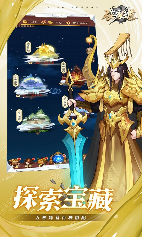 放置卡牌《侠客道-免费版(0.1折免费版)》2024/8/10 10:00首发 全新二次元放置卡牌类手游,穿梭历史长河,解锁全新英雄,征战华夏共创辉煌! 以二次元+国风为画皮、以华夏历史为根骨、以游戏为载翼,展述古华夏文明的历史传奇! 超一线画师加盟助力!妙手绘徽真,挥毫落纸美自成,为所有角色赋予生动的灵魂! 【游戏特色】 ★—放置玩法、不肝不氪— 超经典放置玩法!上班累了可摸鱼、等公车无聊可放松,省时省力还省钱、生活娱乐两不误! 离线时长也可积累奖励,随随便便就能战力暴涨!佛系玩法不求人,助你护肝养生! ★—无穷策略、多变不同— 上百名各具特色历史传说人物,不同种族的英雄相互克制,搭配得当可享受种族属性加成/反馈! 超经典战前布阵的回合制战斗模式,不同的阵法不同位置都有着重要的战略意义! ★—无尽冒险、多线挂机— 集多种PVE、PVP玩法和特色养成线! 无尽试炼、英雄远征、神秘探险、古城迷宫、竞技演武、家族战争... 多重玩法、多线操作!更有高难战斗等你挑战!